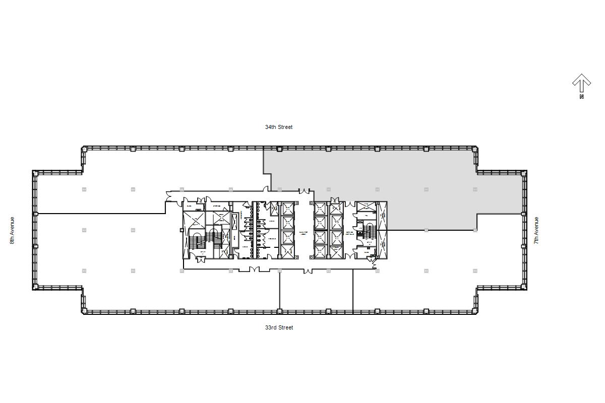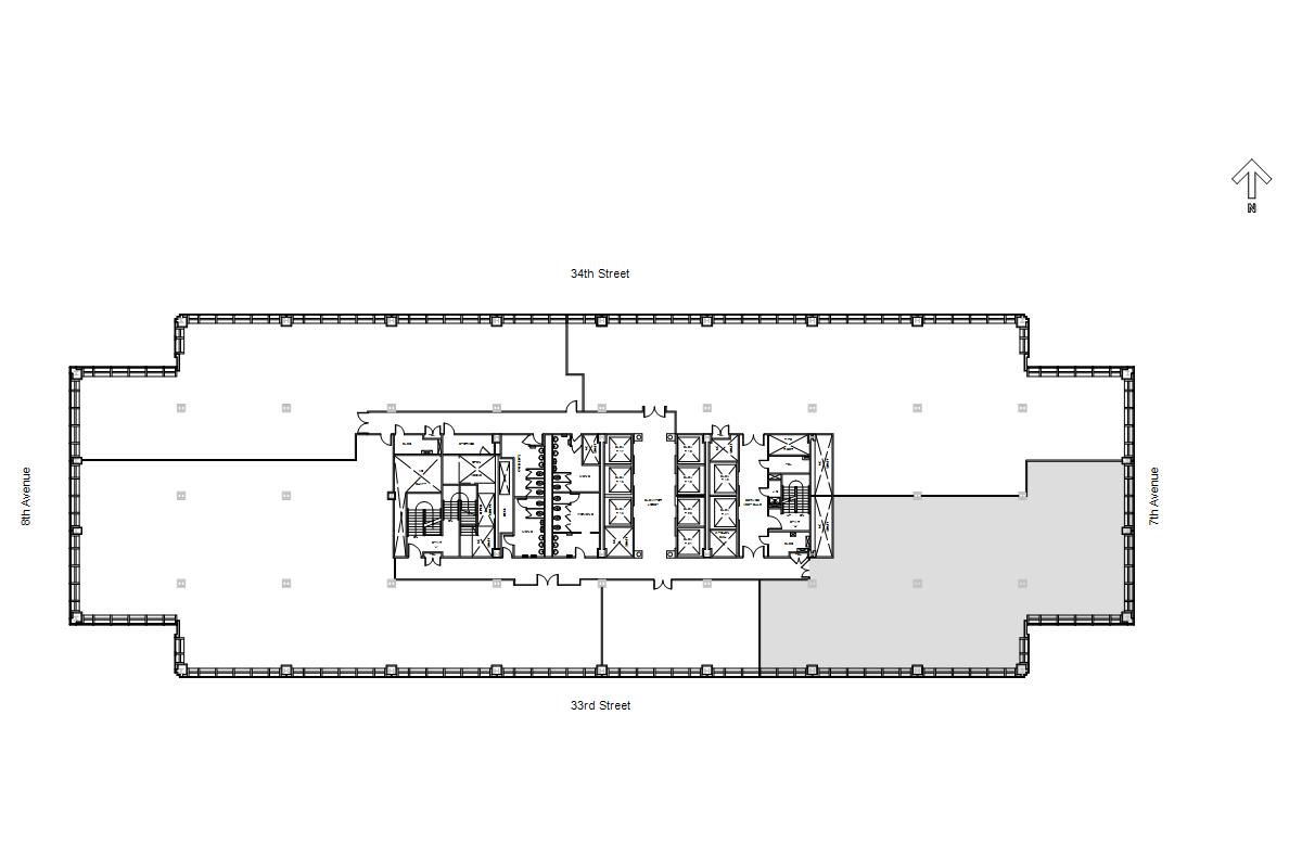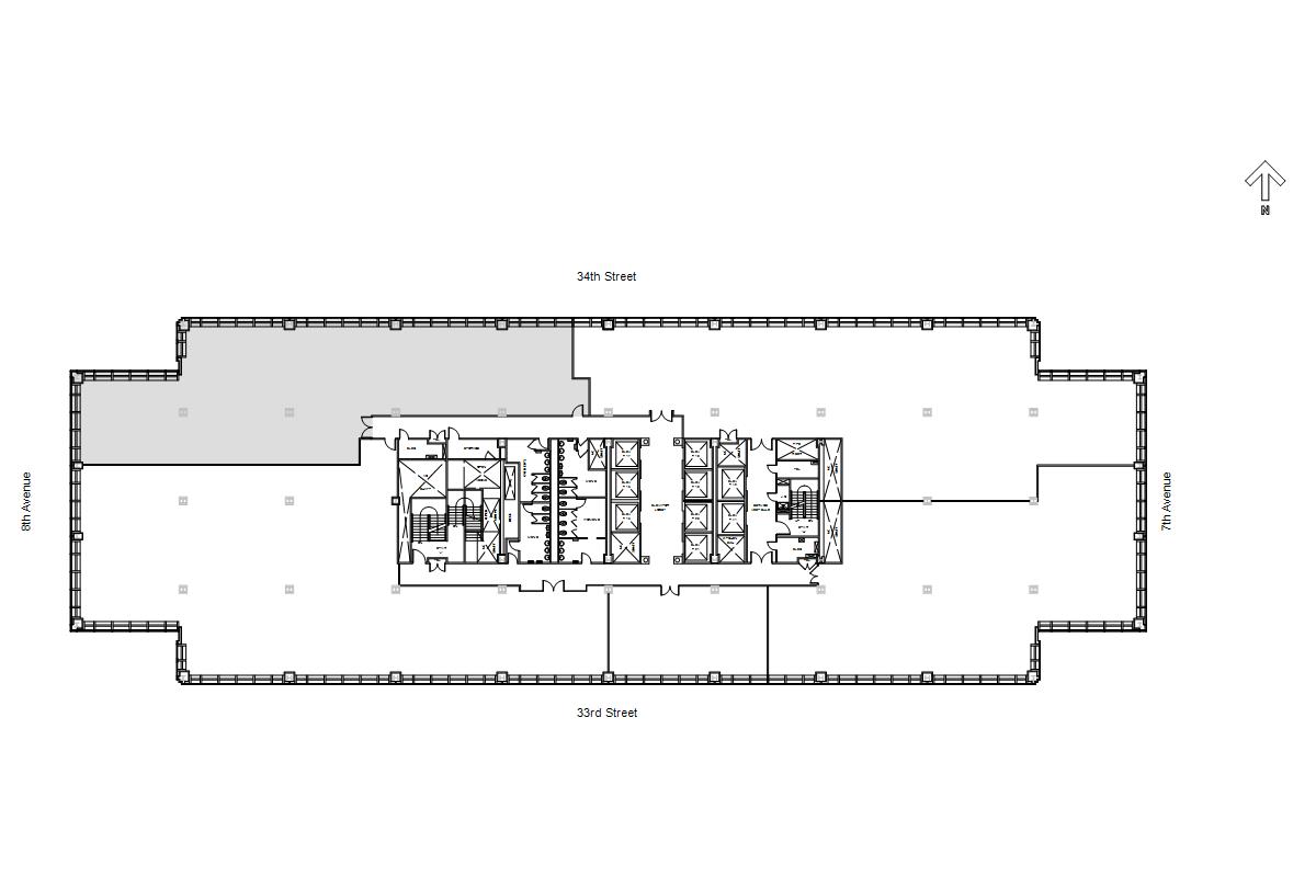 The Building occupies the area between 33rd and 34th Street and 7th and 8th Avenues.
